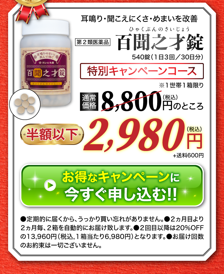 最初は1ヶ月に1度少しだけ耳鳴りがする程度でしたが、徐々に次来るまでの間隔が短くなっていき、人と会話する時に聞き取れないほどひどくなっていました。 お医者さんからはしっかり睡眠をとって休んでと言われましたが、ネットで見つけたこれを信じてよかった。楽になってからも、再発予防と思って飲み続けています。